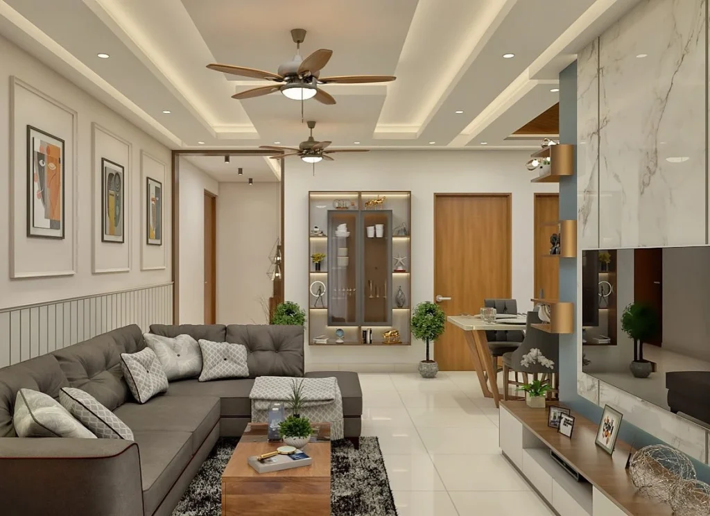The living room is the focal point of any home. In modern house design Shivamoga, living rooms are designed to be both welcoming and stylish.